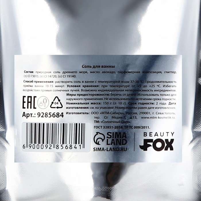 Соль для ванны с блестками «Не спал сутками?», 150 г, аромат мяты, BEAUTY FОХ