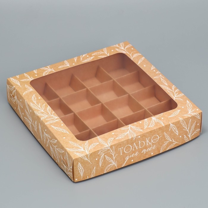 Коробка для конфет, кондитерская упаковка, 16 ячеек «Только для тебя», 18.9 х 18.9 х 3.8 см