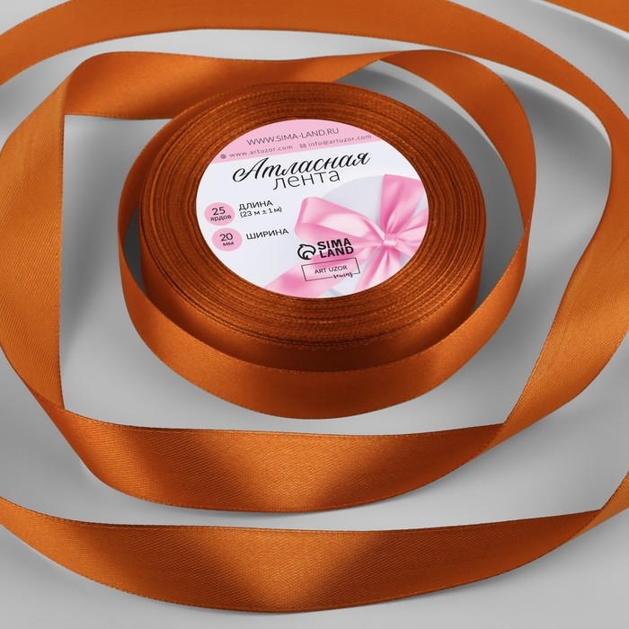 Лента атласная, 20 мм × 23 ± 1 м, цвет карамельный №161