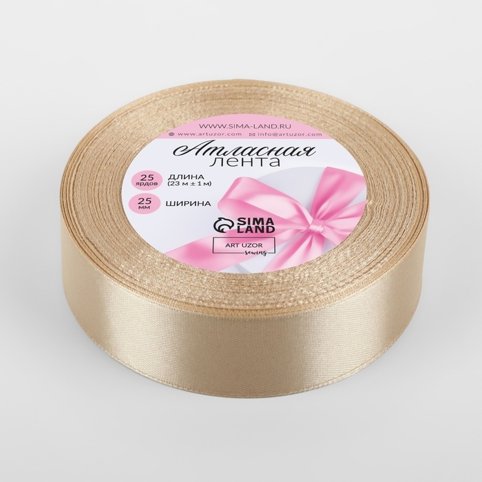 Лента атласная, 25 мм × 23 ± 1 м, цвет светло-бежевый №173