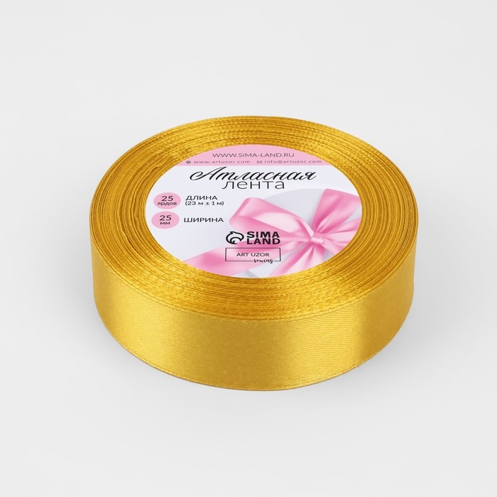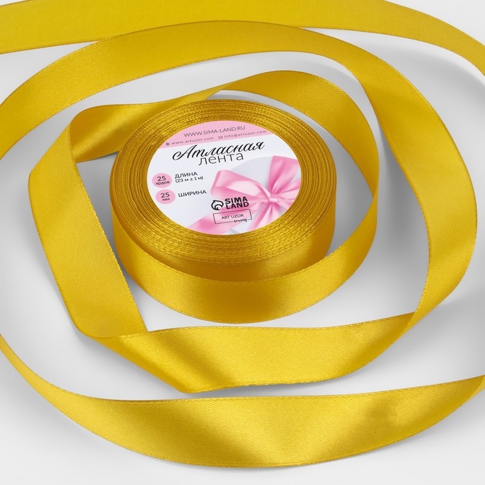 Лента атласная, 25 мм × 23 ± 1 м, цвет горчичный №М209