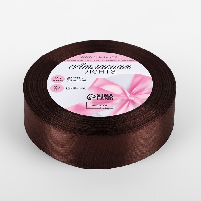 Лента атласная, 25 мм × 23 ± 1 м, цвет горький шоколад №М496