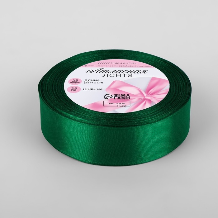 Лента атласная, 25 мм × 23 ± 1 м, цвет насыщенный зелёный №С1123