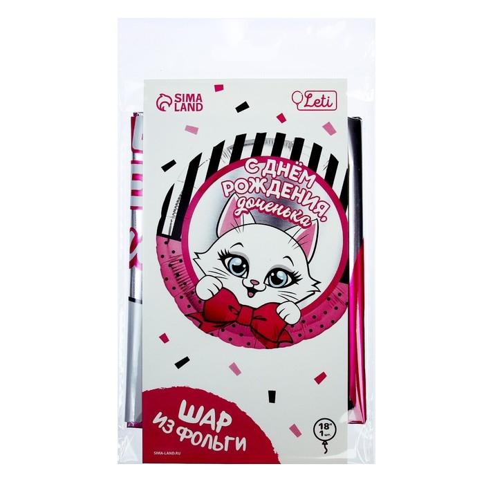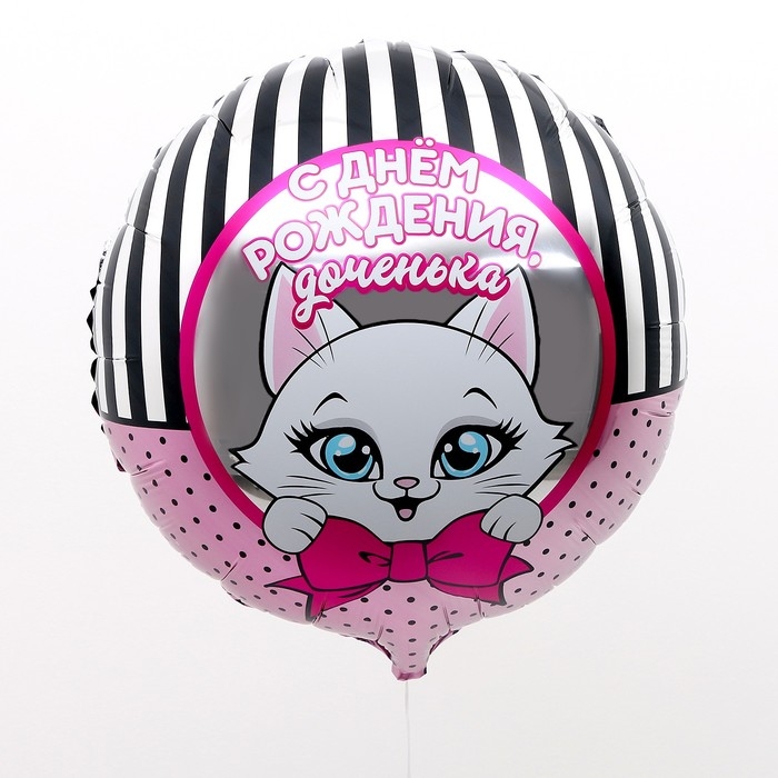 Фольгированный шар с надписью «С днём рождения, доченька» — отличное дополнение к подарку для ребёнка! Он оформлен в ярко-розовых оттенках, на нём изображена кошечка. Несколькими шарами можно эффектно украсить помещение или оформить фотозону.