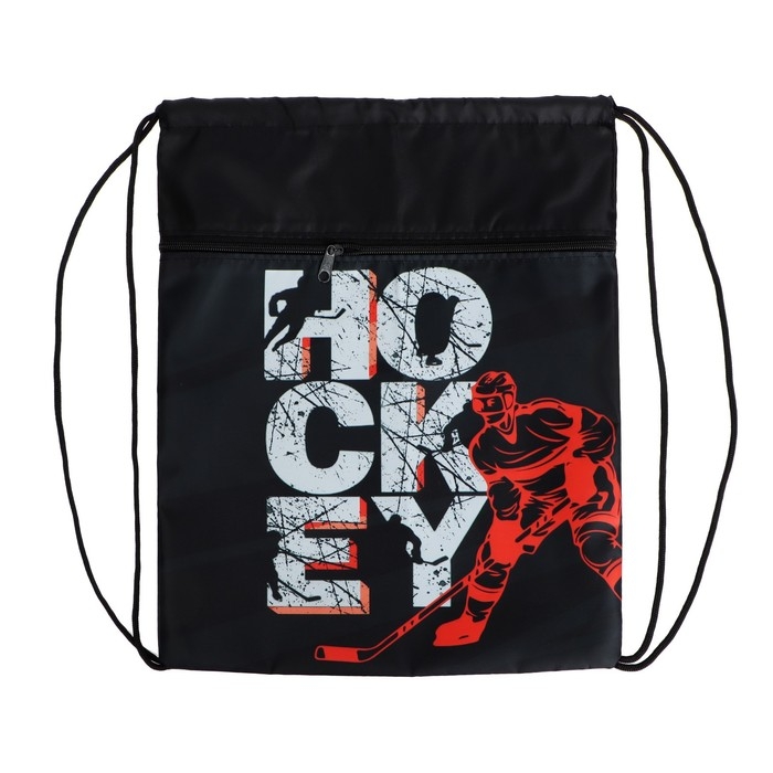 Мешок для обуви с карманом 420 х 340 мм, Calligrata МСО-7С, (мягкий полиэстер, плотность 210D), "Хоккей"