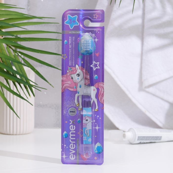 Зубная щетка для детей Evermex с единорогом и мягкой щетиной - это специально разработанная щетка, которая помогает детям поддерживать хорошую гигиену полости рта и формировать правильные привычки заботы о зубах. Она обладает следующими особенностями:
