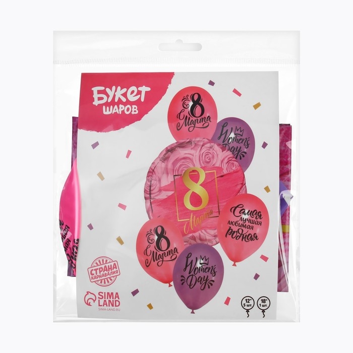 Набор воздушных шаров «8 Марта», фольга, латекс, 6 шт.