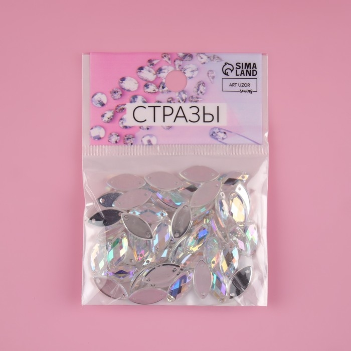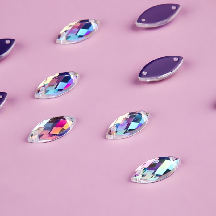 Стразы пришивные «Лепесток», из органического стекла, с голографией, 7 × 15 мм, 50 шт