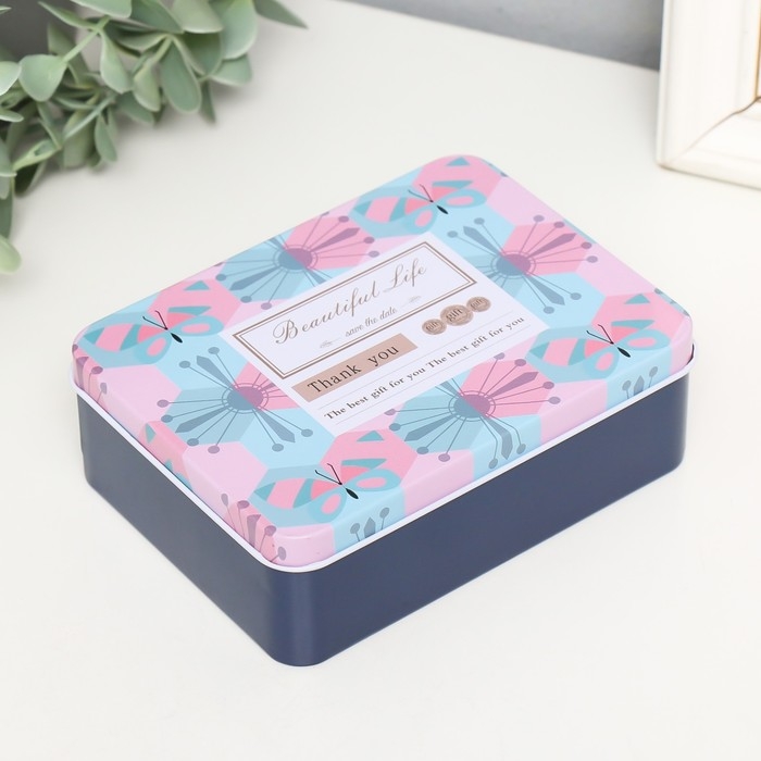 Шкатулка металл прямоугольная "Бабочки и цветы" 12,5х9,5х4,2 см