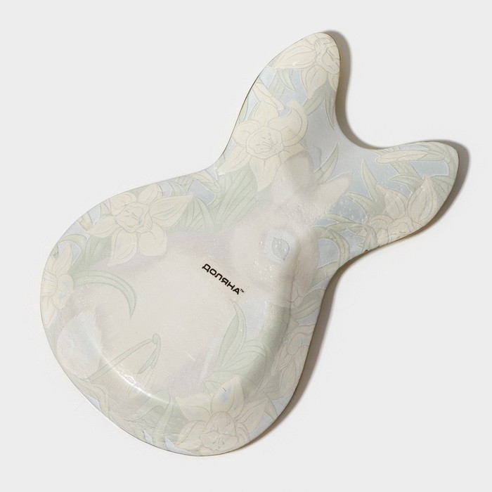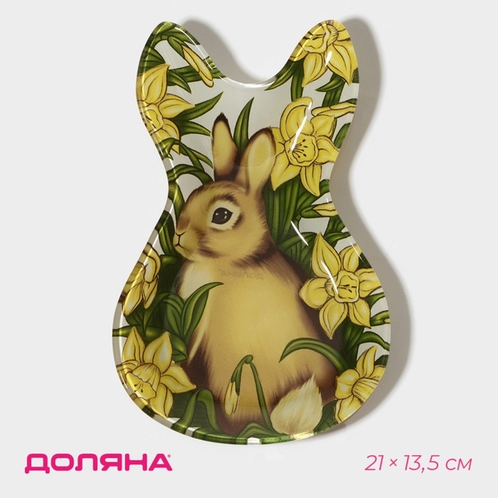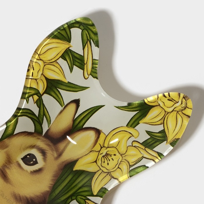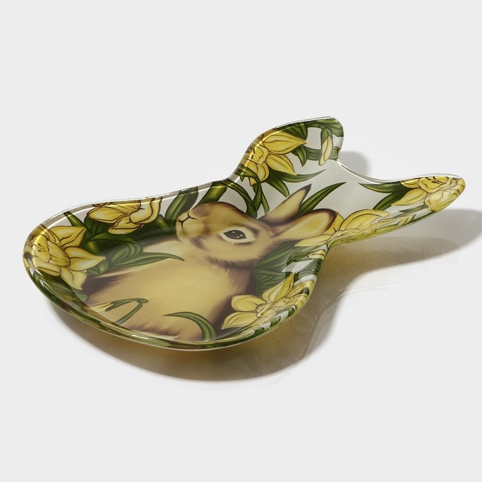 Блюдо стеклянное сервировочное Доляна «Кролик в цветах», 21×13,5×1,8 см