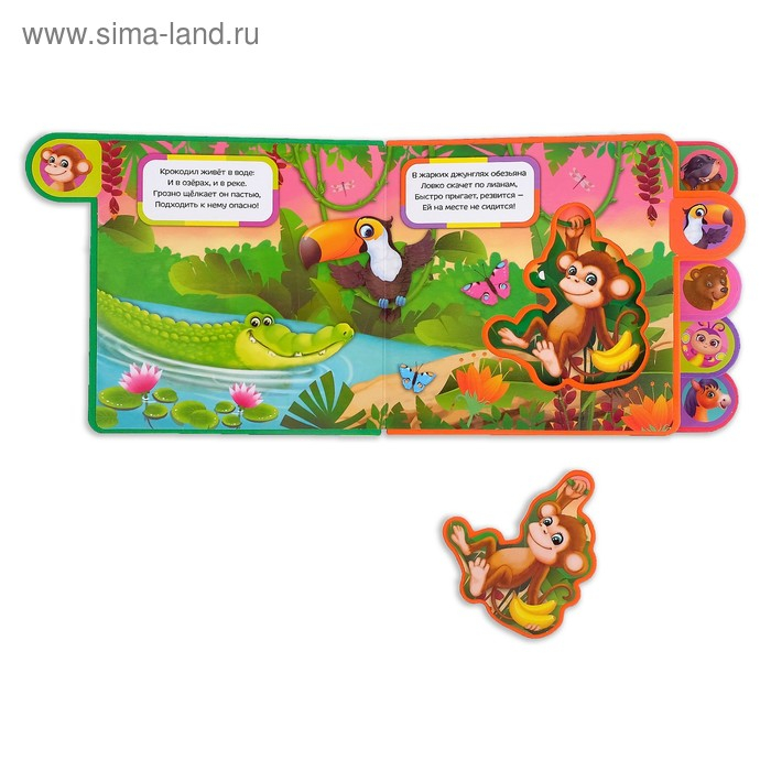 С мягкой книгой малыш получит свои первые знания о мире животных и где они обитают. А также сможет поиграть с 5 вынимающимися пазлами.