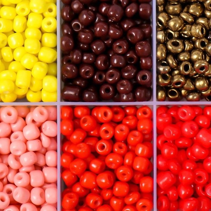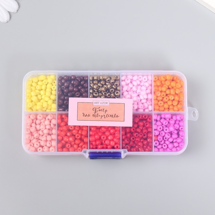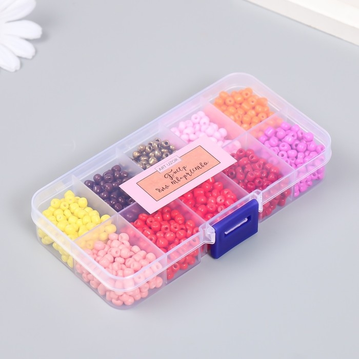 Бисер стекло 6/0 в шкатулке 10 делений "Красно-розовый" 1 деление=10 гр 12,8х6,5х2,2 см