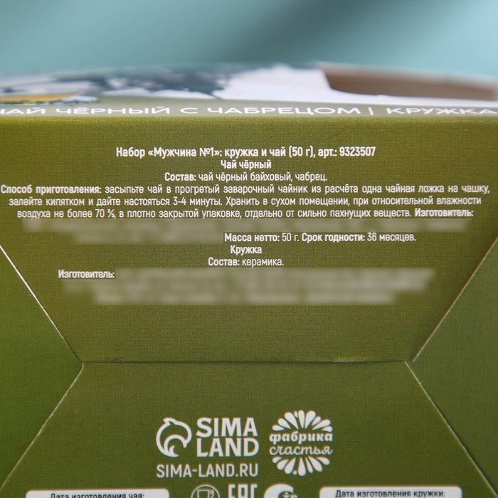 Набор «Мужчина номер один», чай чёрный со вкусом чабреца 50 г., кружка 300 мл.
