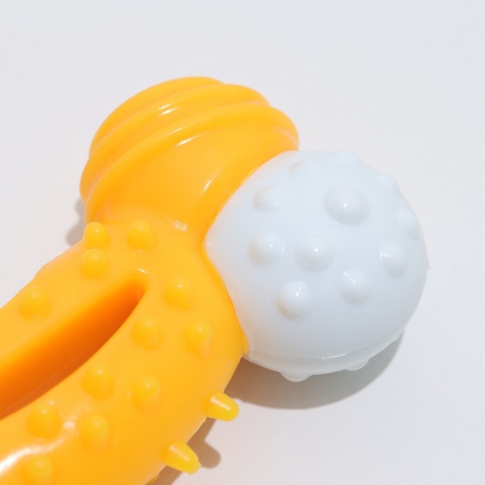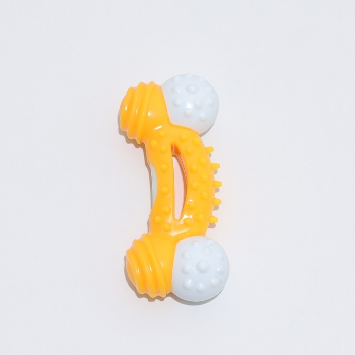 Игрушка двухслойная (твердый и мягкий пластик) "Изогнутая кость", 13 см желтая
