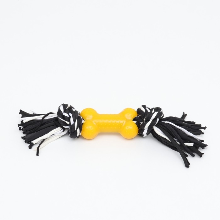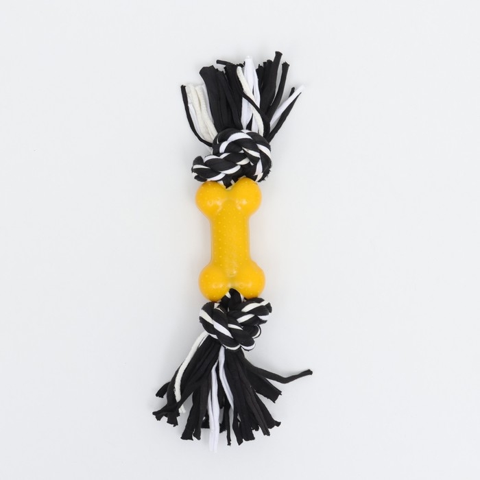 Игрушка канатная с косточкой, до 105 г, до 25 см, чёрно-жёлтая серия