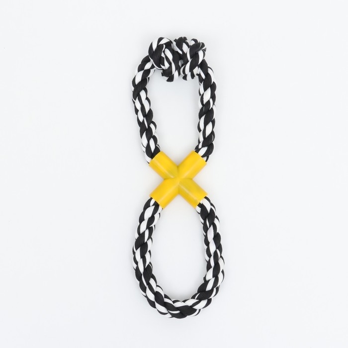 Игрушка канатная "Восьмёрка с кольцами", до 28 см, до 115 г, чёрно-жёлтая серия