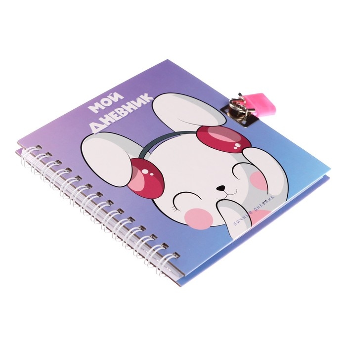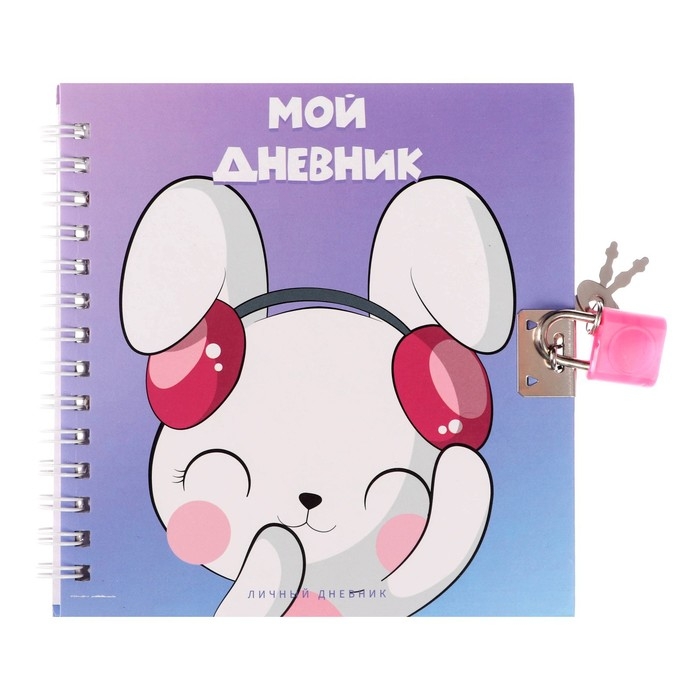 Записная книжка подарочная на замочке, А6, 45 листов, в линейку, "Зайка"