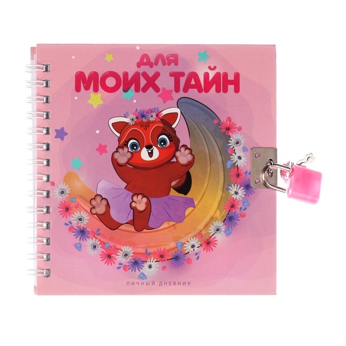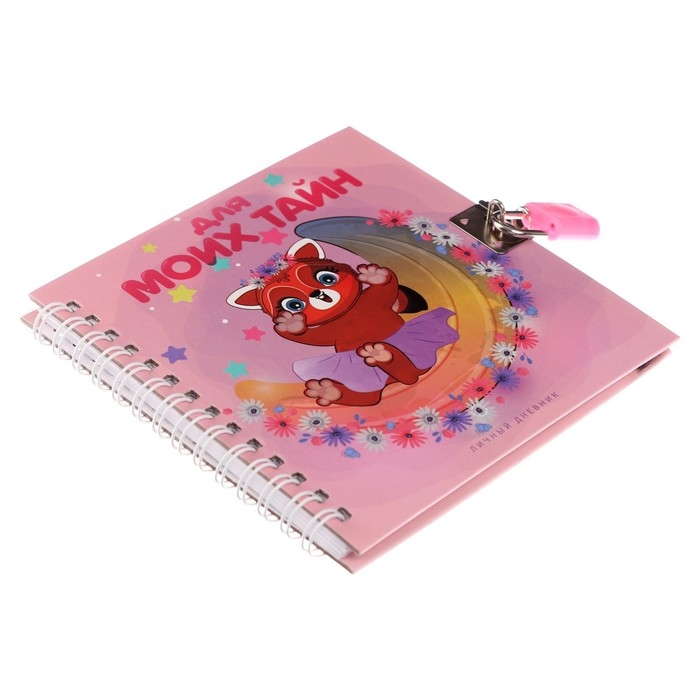 Записная книжка подарочная на замочке, А6, 45 листов, в линейку "Красная панда"