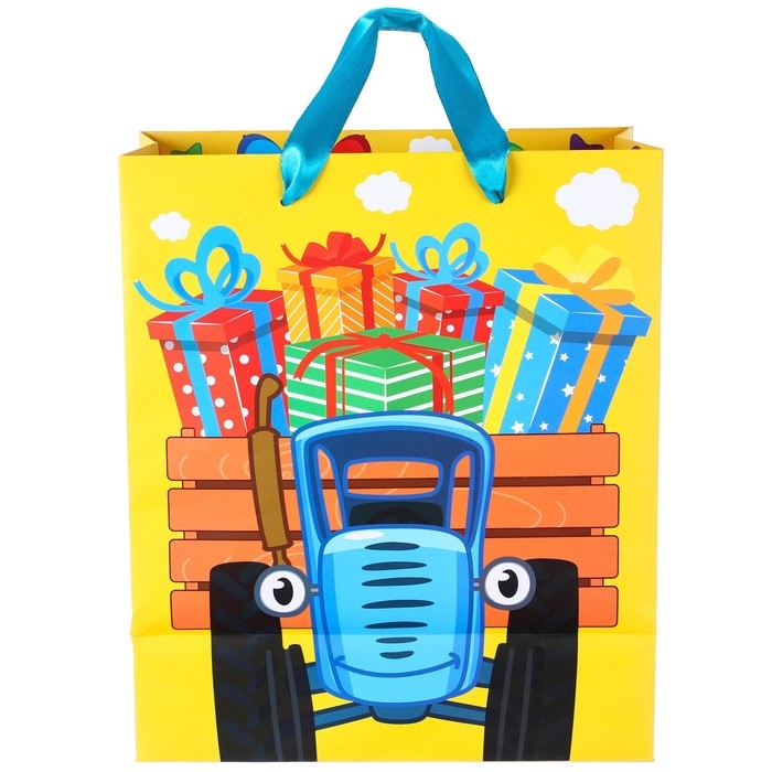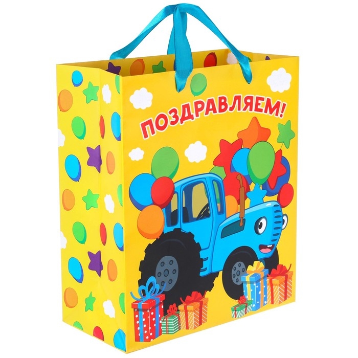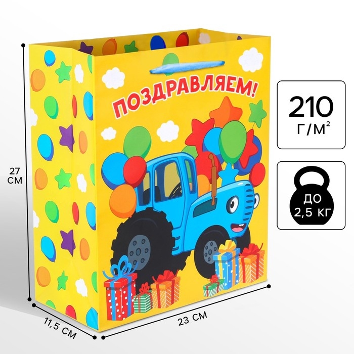 Пакет подарочный "Поздравляем!" 23х27х11.5 см, упаковка, Синий трактор