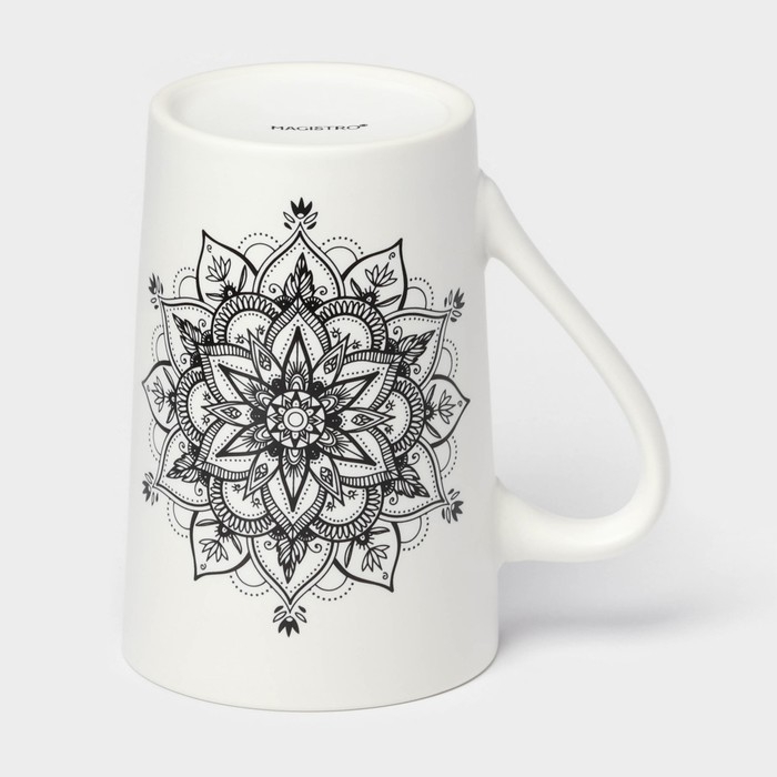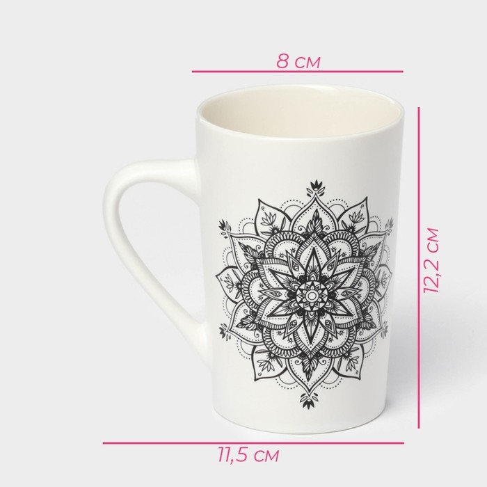 Кружка фарфоровая Доляна «Мандала», 380 мл, чёрный узор