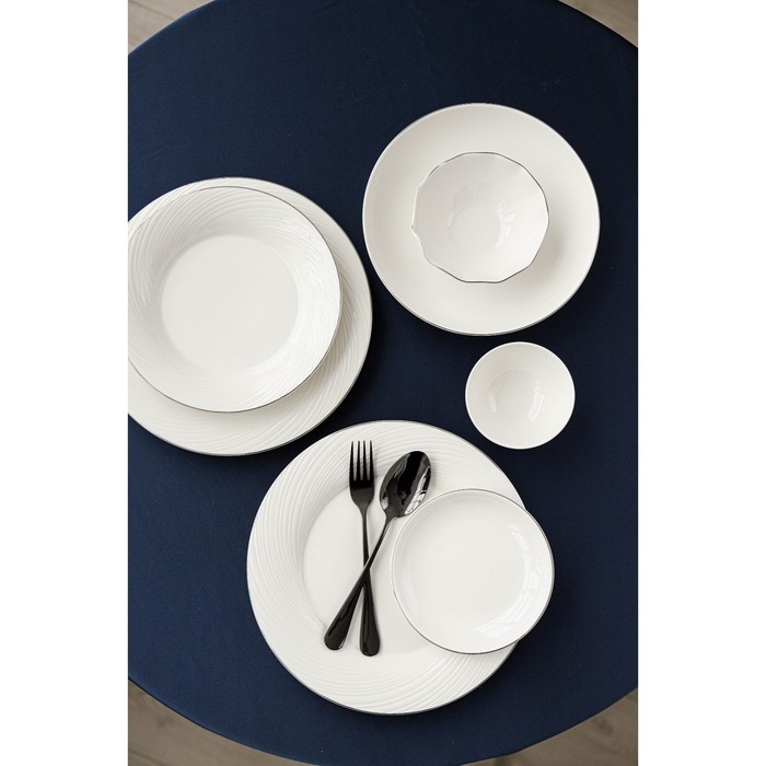 Посуда Magistro серии La Perle покорит лаконичным дизайном и молочной белизной натурального фарфора. Современная форма предметов подчеркнута элегантной серебряной окантовкой. Изделия из линейки La Perle можно использовать как в повседневной, так и в праздничной сервировке. Посуда станет чудесным подарком и дополнит коллекцию столового семейного фарфора.