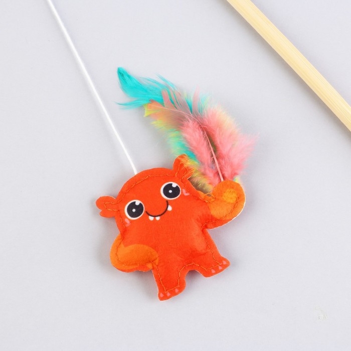 Дразнилка с цветным шариком и перьями, 49 см, палочка микс цветов