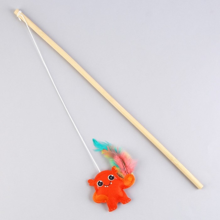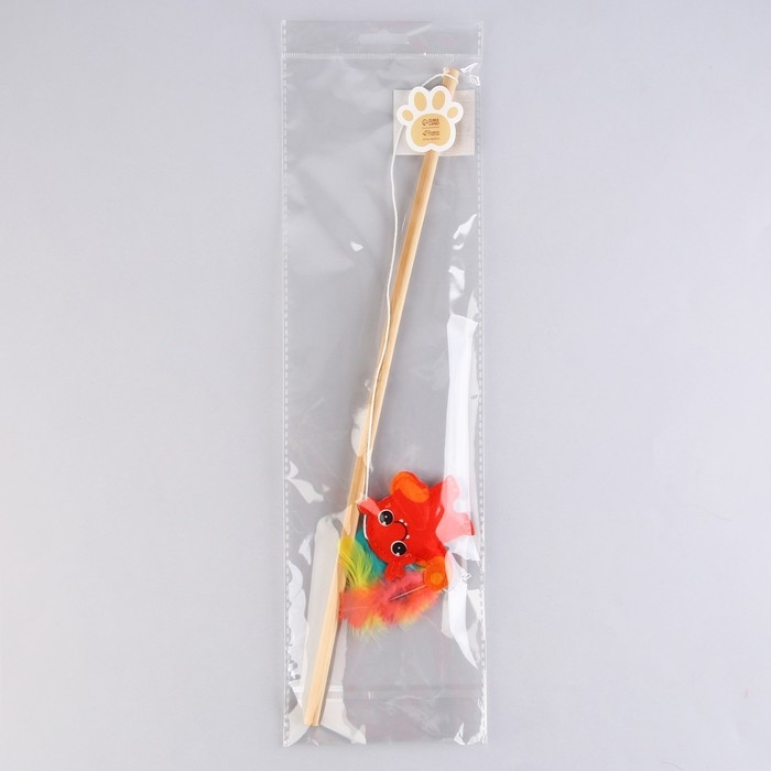 Дразнилка-удочка с серой мышью, палочка микс цветов