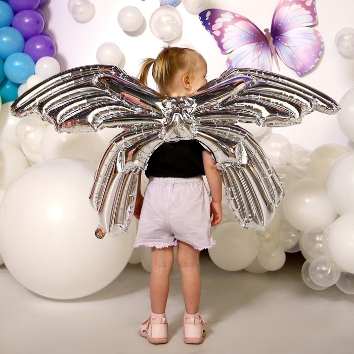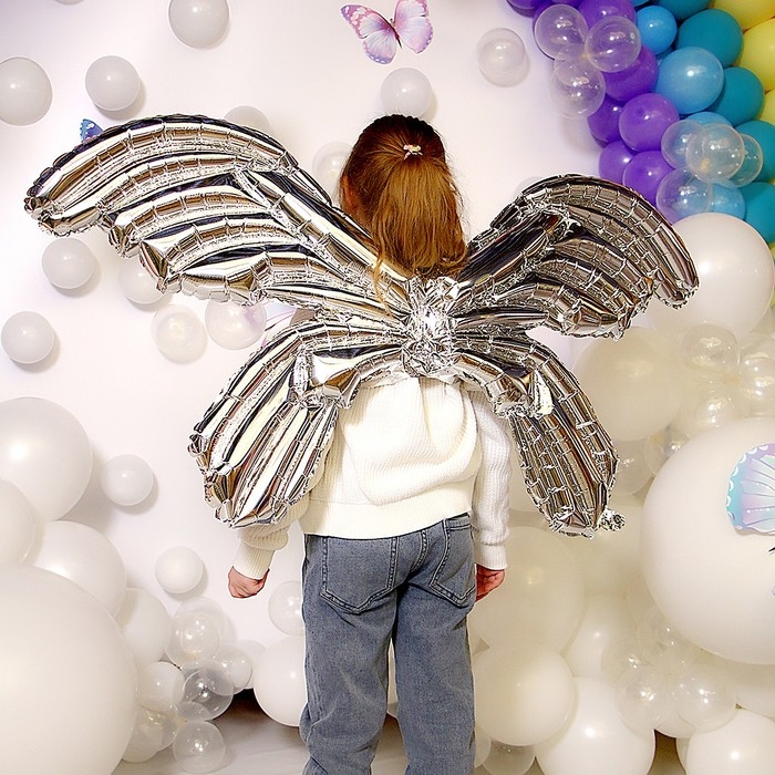 Фольгированные крылья «Бабочка», 122 см., серебро