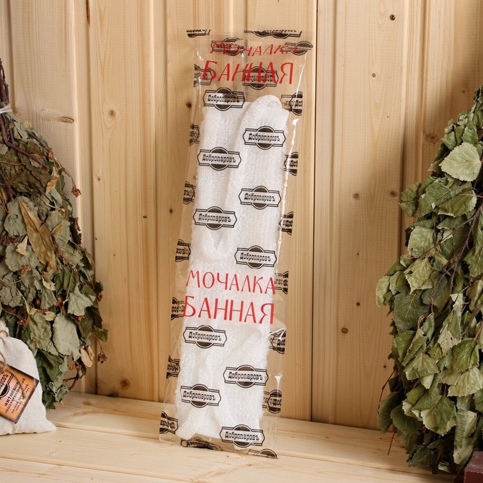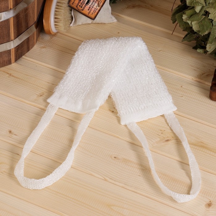 Мочалка банная с ручками "Пояс" белая (36 см без ручек) Добропаровъ