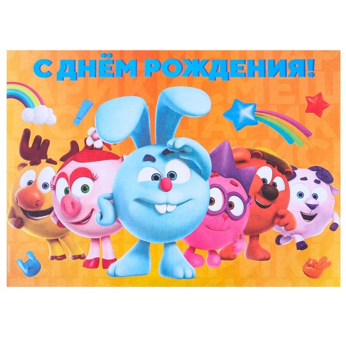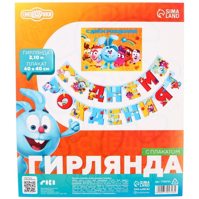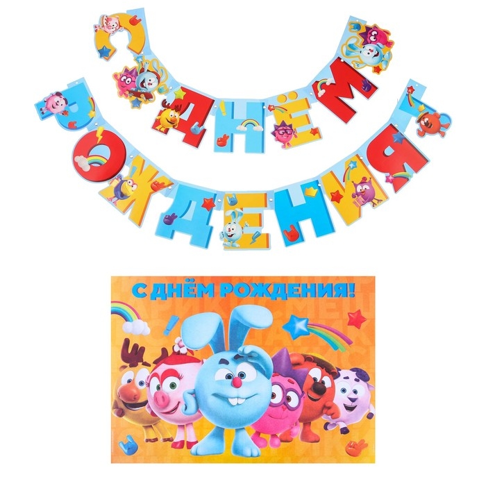 Гирлянда на люверсах "С Днем Рождения", длина 210 см, с плакатом 60х40 см, Смешарики