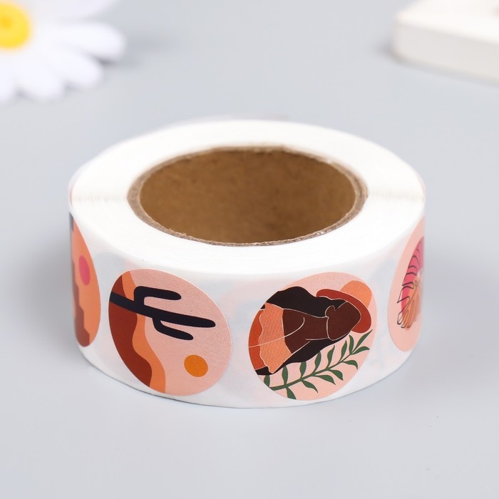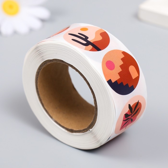 Наклейка бумага "Абстракция. Природа" d=2,5 см 500 шт в рулоне 3х6,5х6,5 см
