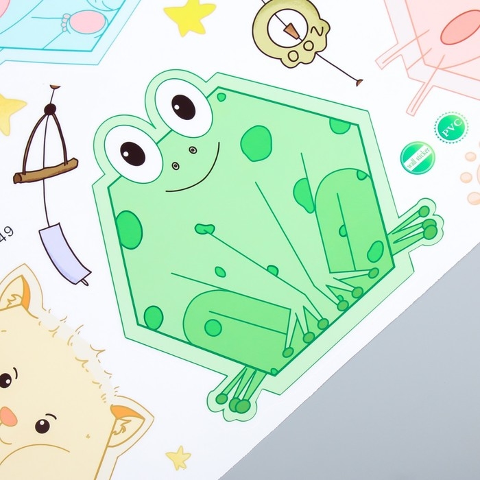 Наклейка пластик интерьерная цветная "Зверята-шестигранники" 40х60 см