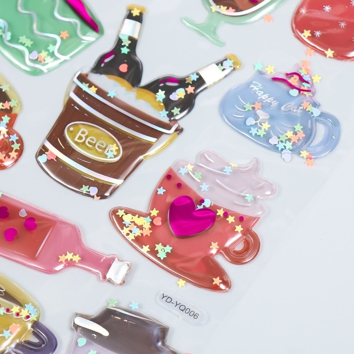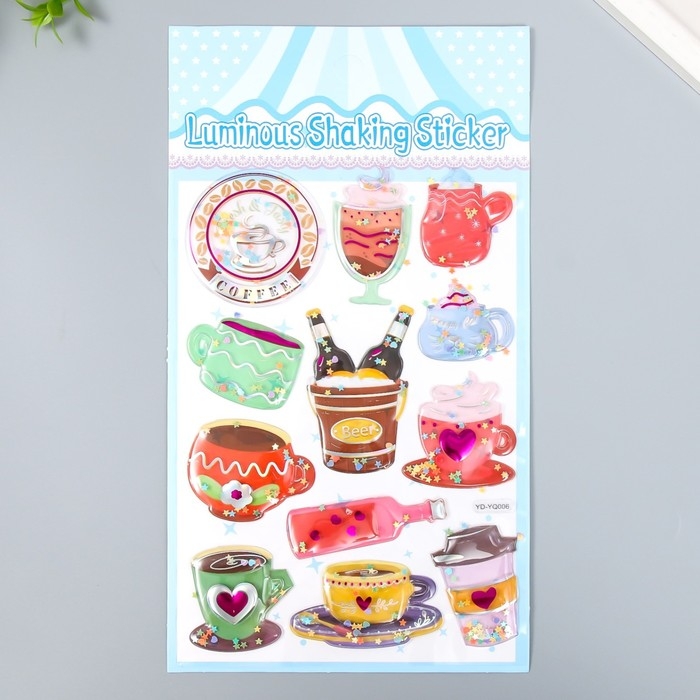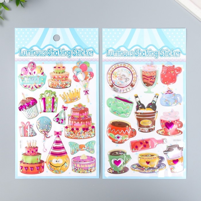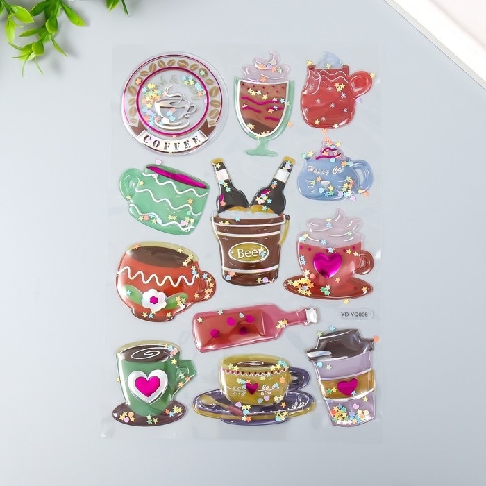 Наклейка пластик объёмные с глиттером "Напитки/Десерты" золото/серебро МИКС