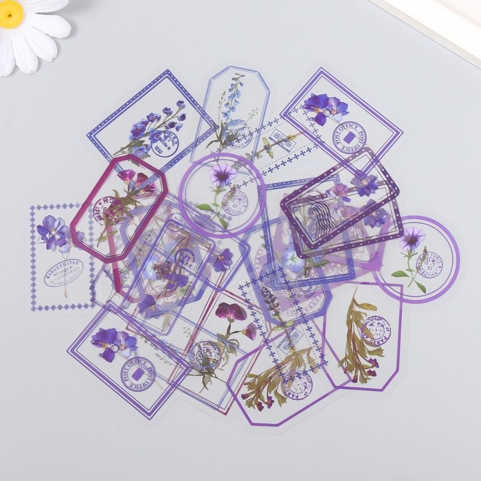 Наклейки для творчества "Теги - Фиолетовые цветы" набор 30 шт 0,2х8х11 см