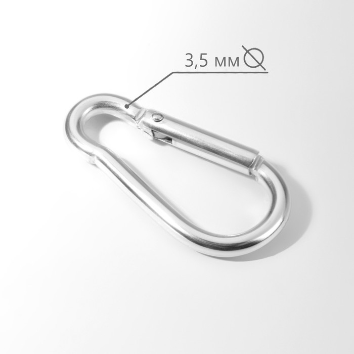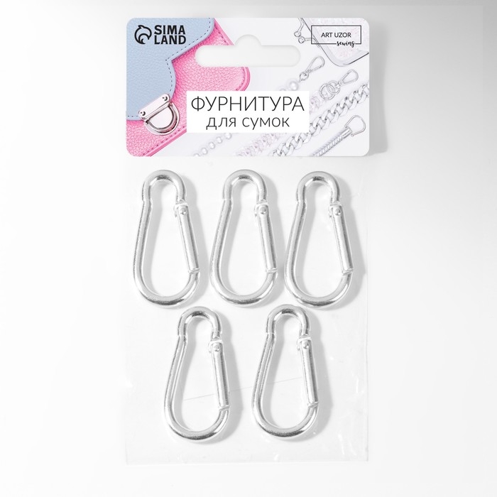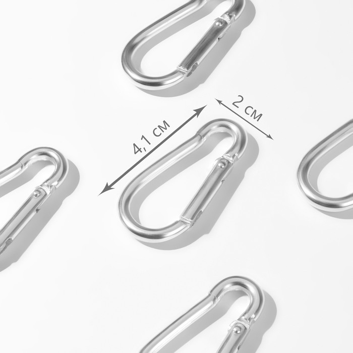 Карабин металлический, 41 × 20 мм, толщина - 3,5 мм, 5 шт, цвет серебряный
