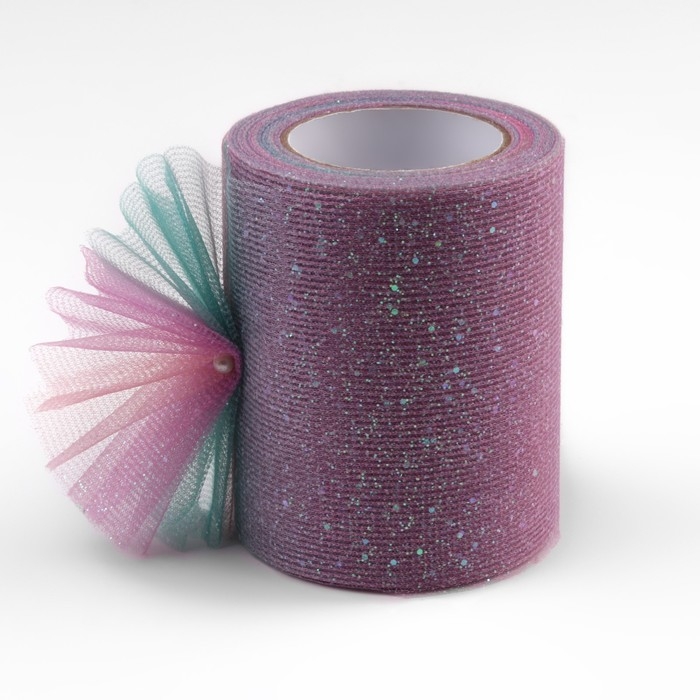 Фатин с глиттером «Радуга», 7,5 см, 11 ± 1 г/кв.м, 9 ± 0,5 м, цвет розовый №1