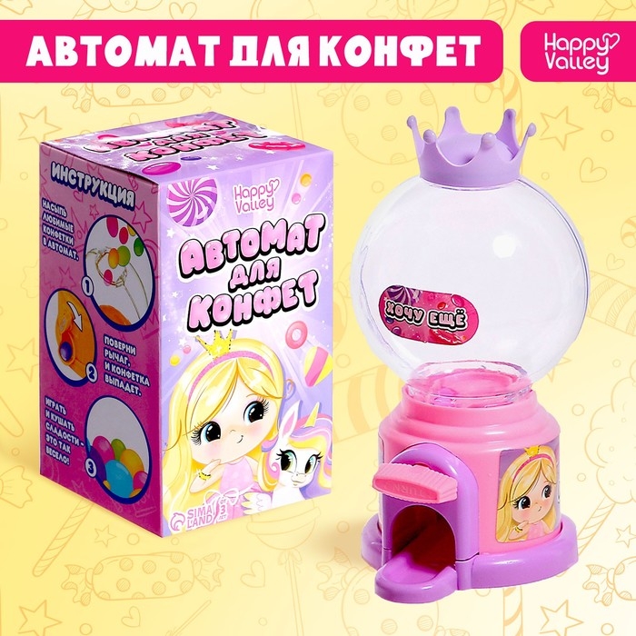 Ваша малышка любит сладости? С игровым автоматом это будет не только вкусно, но и весело! Автомат «Маленькая принцесса» — это уменьшенная копия настоящей машинки для выдачи сладостей. Она станет отличным подарком и поднимет настроение всем гостям на детском празднике! Упаковка красочная, поэтому можно вручить в подарок даже без дополнительного праздничного оформления.