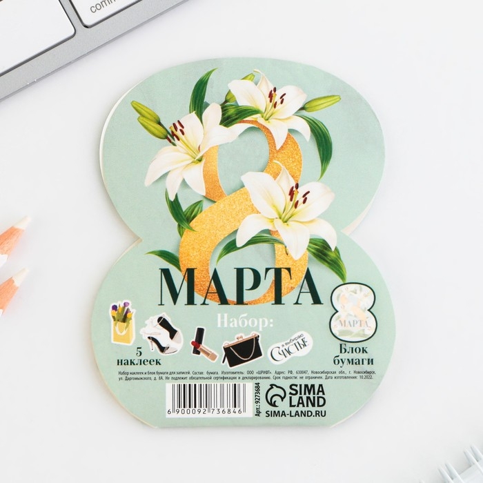 Набор: бумажные стикеры 20 л + 5 наклеек «8 марта лилии»