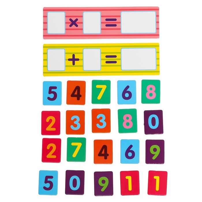 - Выберите, что хотите тренировать: сложение или вычитание. В зависимости от этого установите в тренажёр синюю (сложение) или розовую (умножение) карточку.