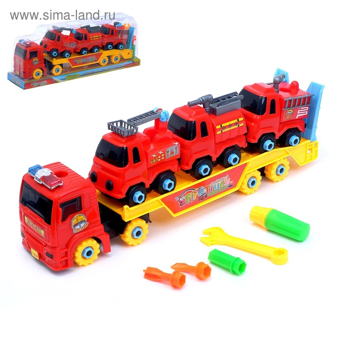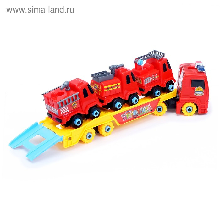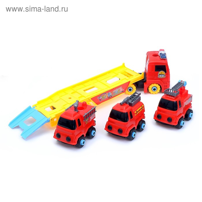 Конструктор винтовой «Пожарный автовоз», с 3 машинками