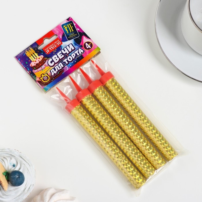 Свечи фонтаны для торта "Золотые искры", 10 см, 30 секунд, 4 шт