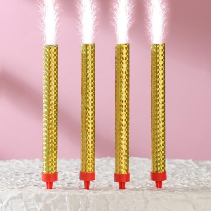 Свечи фонтаны для торта "Золотые искры", 10 см, 30 секунд, 4 шт