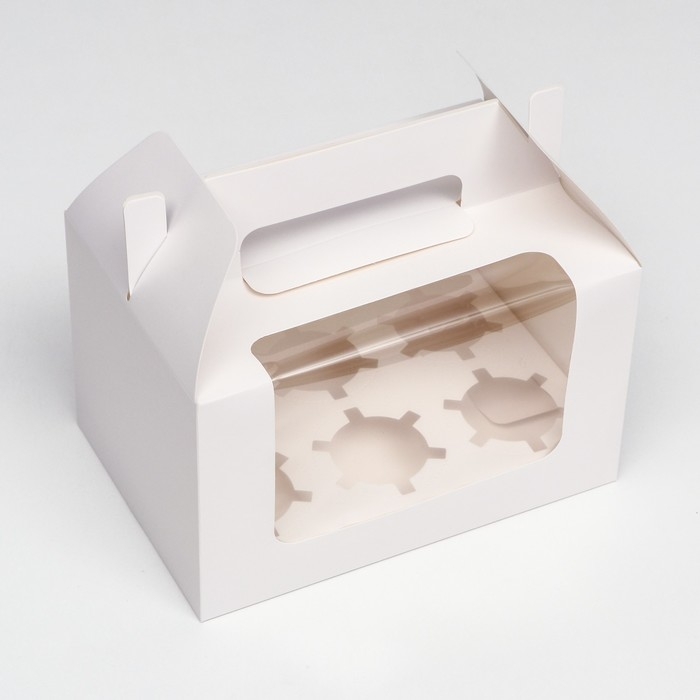 Коробка на 6 капкейков с окном, белая, 25 х 17 х 10 см
