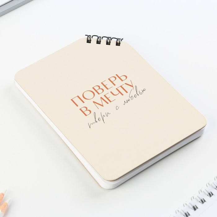 Блокнот А6, 40 л. На скошенном гребне. Белые листы. "Поверь в мечту"