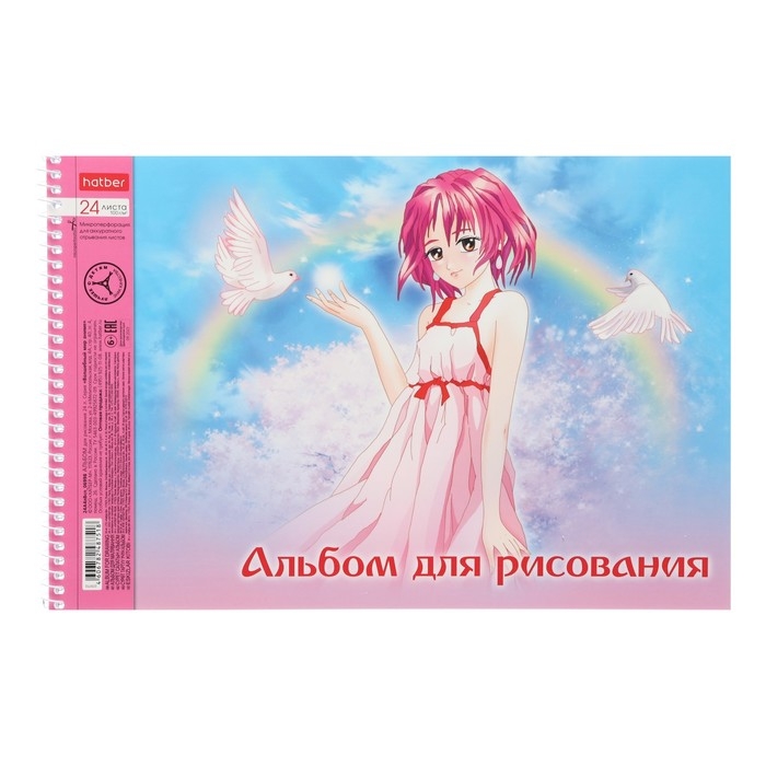 Альбом для рисования А4 24 листа на гребне "Волшебный мир", аниме, обложка мелованный картон, матовая ламинация, блок офсет,на отрыве,5В, МИКС