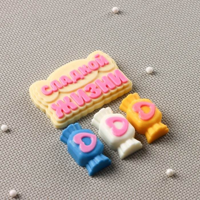 Силиконовая форма «Сладкой жизни», 9×7 см, конфета 4×2 см, надпись 7×4,5 см, цвет прозрачный
