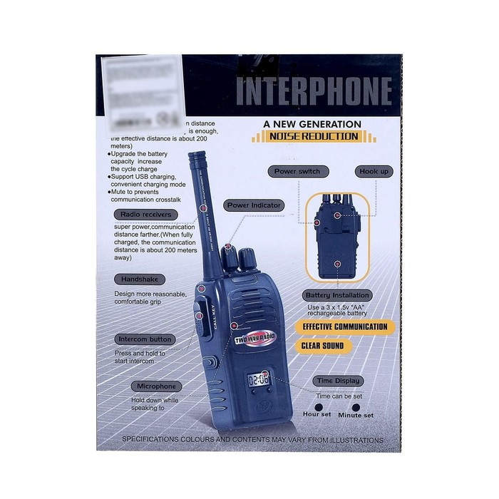 - Вставить 3 аккумулятора типа АА в обе рации (в комплекте).
