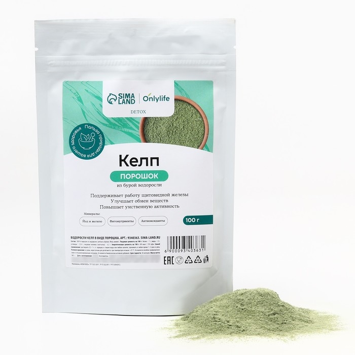 Келп в порошке, из бурой водоросли, железо, йод, хлорофилл, детокс, 100 г.