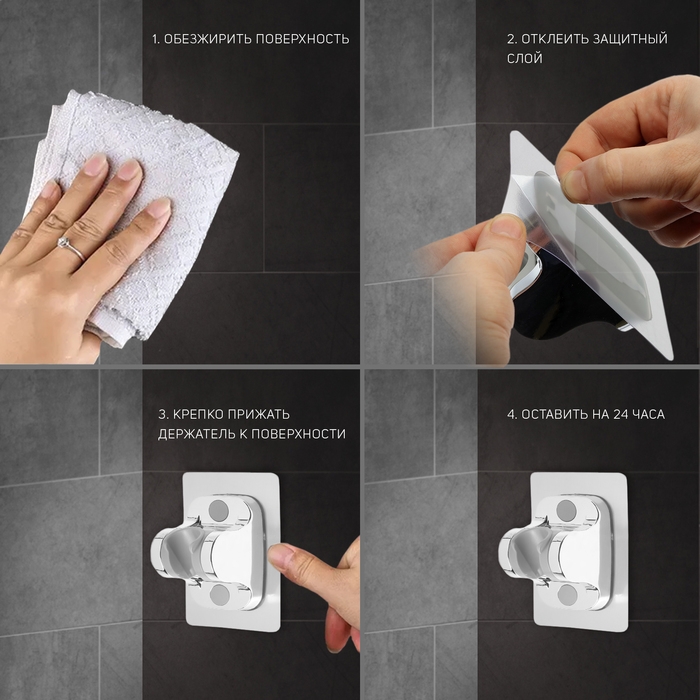 Держатель для душевой лейки ZEIN Z89, самоклеющейся, регулируемый, пластик, белый
