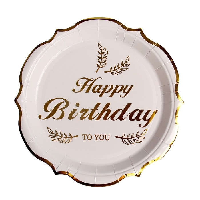 Тарелки бумажные «С днём рождения», в наборе 6 штук, цвет золото